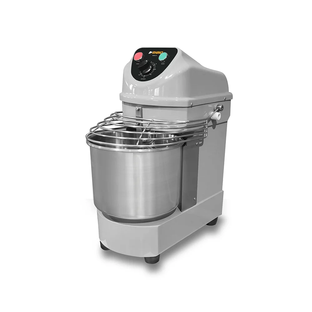Amasadora RHINO modelo AMASA-10 con capacidad de 10 litros, ideal para panaderías, pastelerías y restaurantes. Equipada con tazón de acero inoxidable, motor potente, temporizador y sistema de doble acción giratoria para mezclas homogéneas. Diseño robusto, fácil de operar y certificada para uso profesional.
