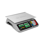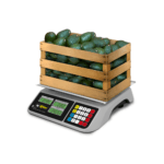 Báscula peso-precio con puerto USB, plato reforzado de acero inoxidable de 36 x 26 cm y funciones de caja registradora. Ideal para comercios que requieren precisión y durabilidad en ventas por kilo o unidad. Incluye batería recargable, pantallas iluminadas y mica protectora.